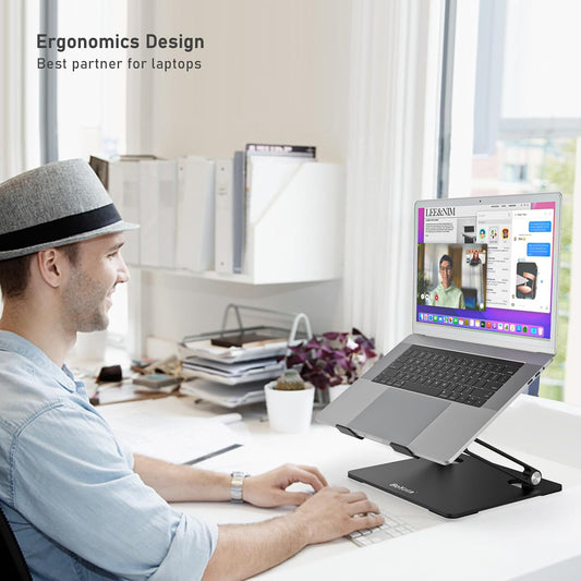 Laptop Stand, Adjustable Laptop Riser with Slide-Proof Silicone and Protective Hooks, Laptop Stand for Laptop up to 17 Inches, Laptop Holder Compatible for Macbook, Laptop-Black
