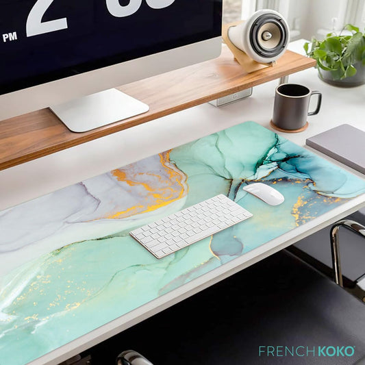 Großes Mauspad, Lange Schreibtischunterlage, Tastaturunterlage, Schreibtischzubehör Für Zuhause, Schule, College, Dekoration, XL, Süßes Marmorblaugrün